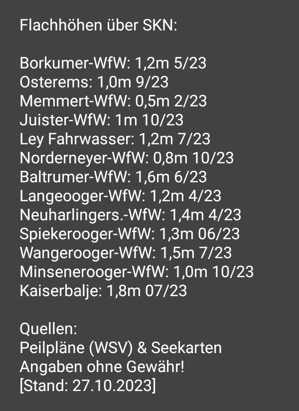 Die „Höhe des Flachs über SKN“ ist entweder der Seekarte zu entnehmen oder, für die ostfriesischen Wattfahrwasser, über das Symbol